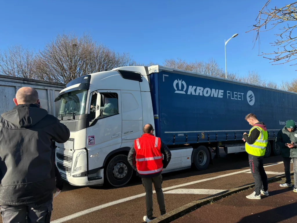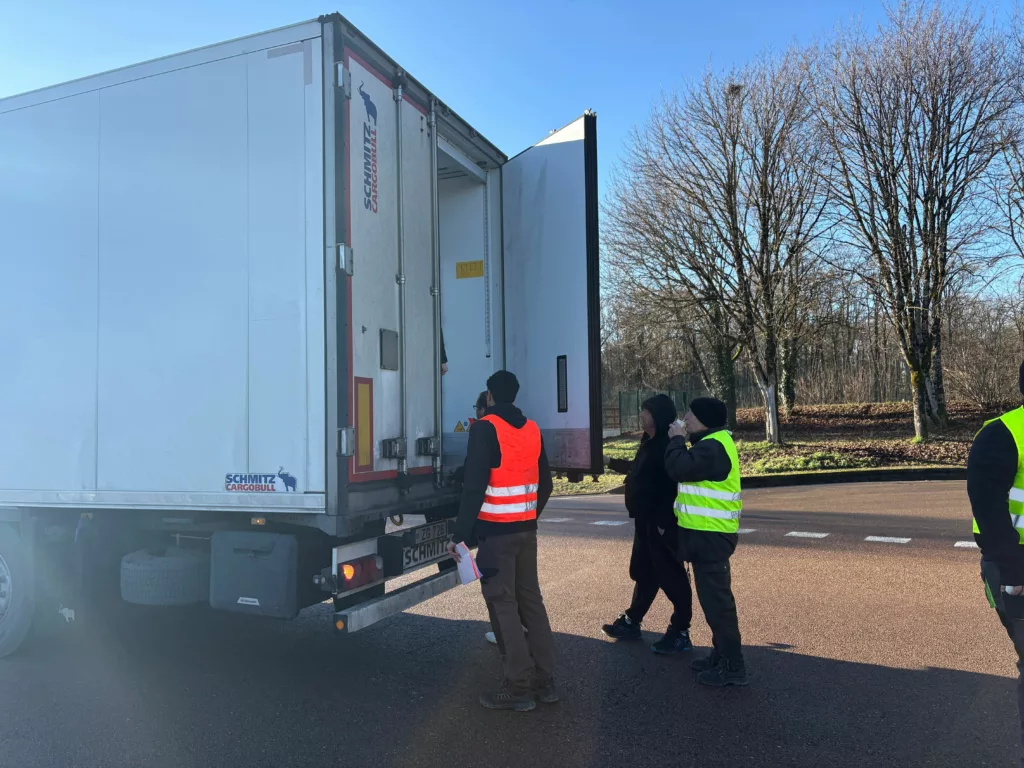 Une dizaine de camions frigos ont déjà été ouverts pour vérifier la provenance de la nourriture transportée à l’intérieur. Pour les agriculteurs, le plus dur est de se faire comprendre avec les transporteurs étrangers.