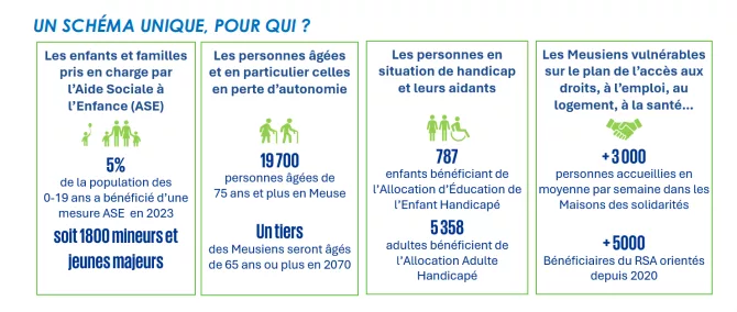 Un schéma qui regroupe tous les dispositifs solidaires. Le jeudi 2 octobre, le département de la Meuse a lancé le schéma unique social et médico-social remplaçant l’ensemble des schémas départementaux liés à la solidarité tels que l’enfance-famille, l’autonomie, l’insertion et l’action sociale. Ce nouveau plan, qui se veut « transversal », organise les diverses politiques sur la base d’une vision stratégique collective et d’un programme commun pour les cinq années à venir.