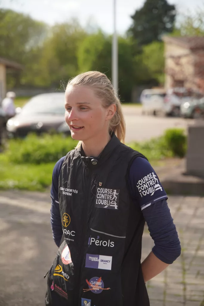 Au bout du fil, le souffle est court mais la voix est d’une clarté absolue. Le craquement des feuilles mortes sous ses foulées ponctue notre échange. Alors qu’elle court, Julie a prit mon appel pour répondre à quelques questions. Actuellement en plein Parc Naturel Régional de Lorraine, Justine Decourselle vit une étape solitaire. « Là je suis un peu toute seule pour le coup, dans la nature », confie-t-elle. Ce calme contraste avec l’effervescence des jours précédents, mais il sied à la solennité de son périple : 33 jours de course pour relier Drancy à Auschwitz, sur les traces du convoi 71 qui quitta la France le 13 avril 1944.