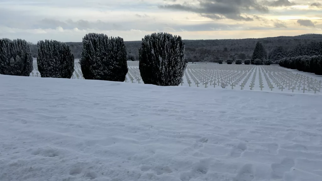 Le plateau de Douaumont à Verdun recouvert de neige