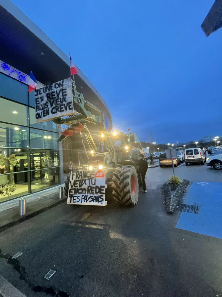La manifestation a commencé dès 7 heures du matin où un petit groupe s’est réuni devant le magasin Leclerc. Accompagnés de tracteurs et armés de pancartes, ils traversent la ville chaumontaise avant de s’arrêter devant leur établissement où ils y restent un long moment. « France veux-tu encore de tes paysans »; « Jeune on en rêve, plus vieux on en crève » ou encore «Non à l’abattage », sont les messages qui se lisent sur leurs divers panneaux.